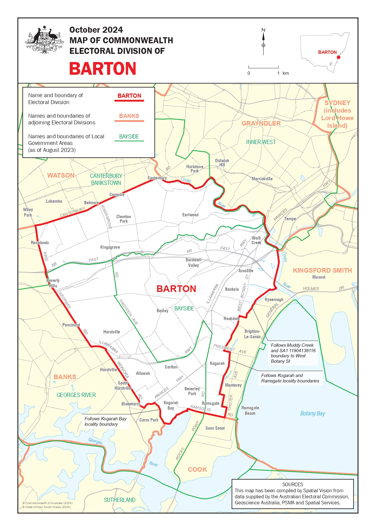 Like other electorates, Barton’s boundaries are set by the Australian Electoral Commission.